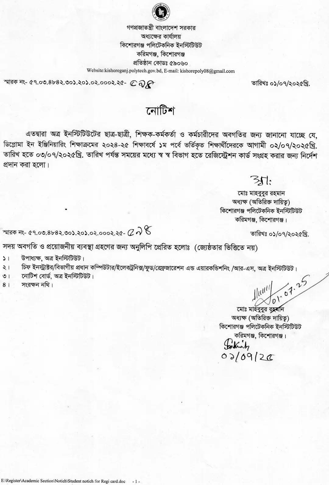 কন্টেন্ট: নোটিশ প্রকাশের তারিখ: ০১-০৭-২০২৫ আর্কাইভ তারিখ: ৩০-১২-২০২৫